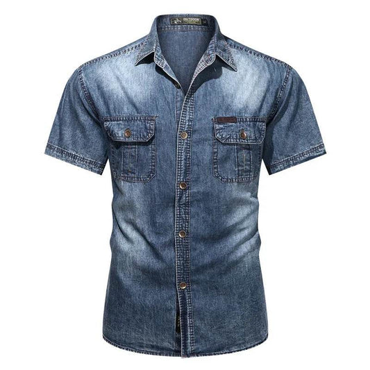 Achetez la chemise en jean d'été Center 2023 - Manches courtes en coton bleu