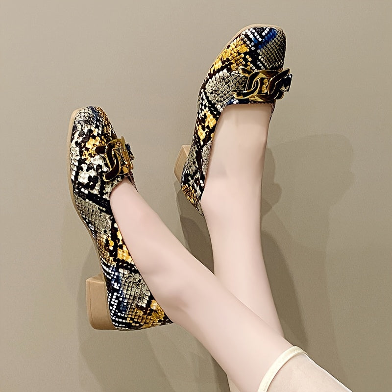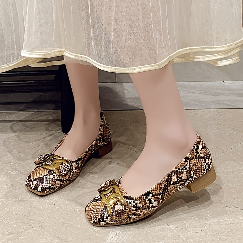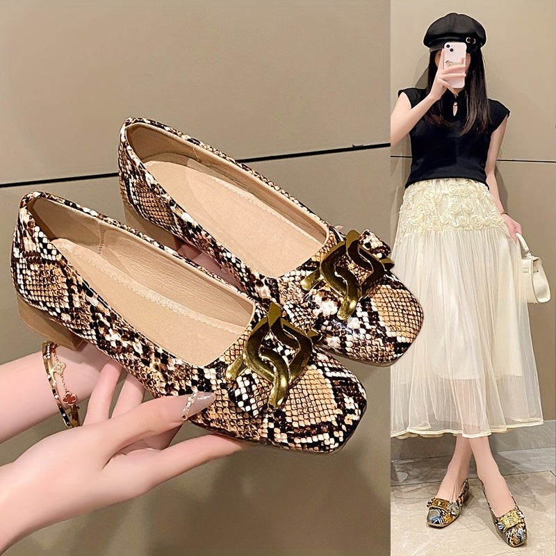 Ballerines élégantes à imprimé serpent pour femmes - Bout carré avec boucle dorée