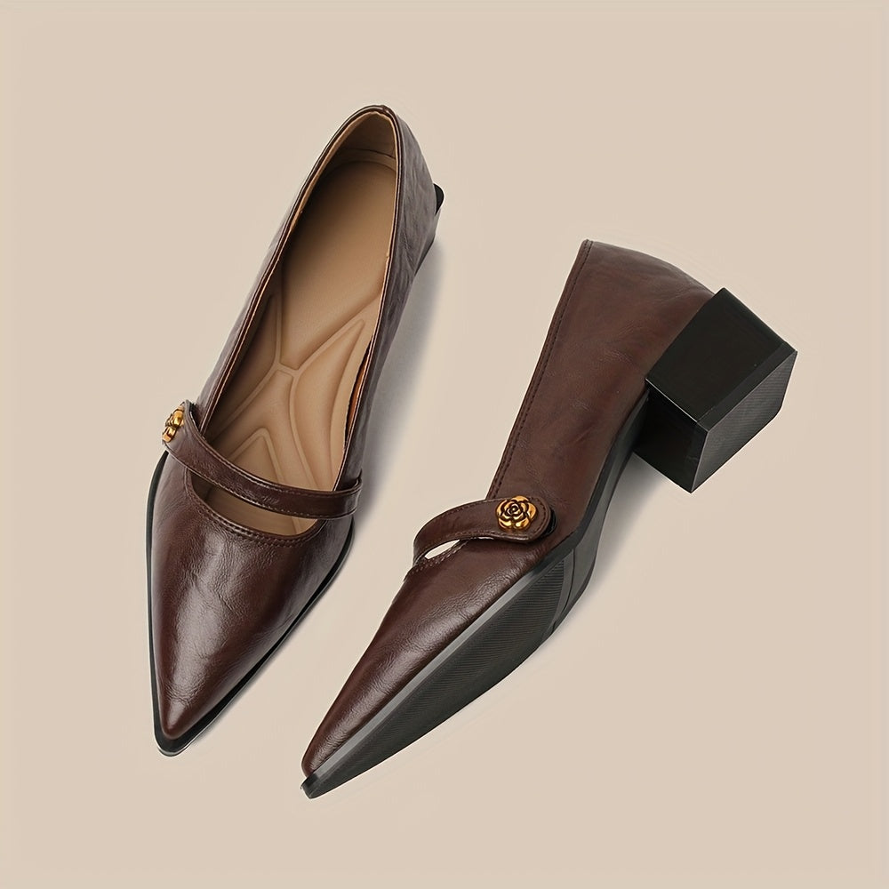 Mules élégantes à bout pointu marron - Bride cheville décontractée et légère