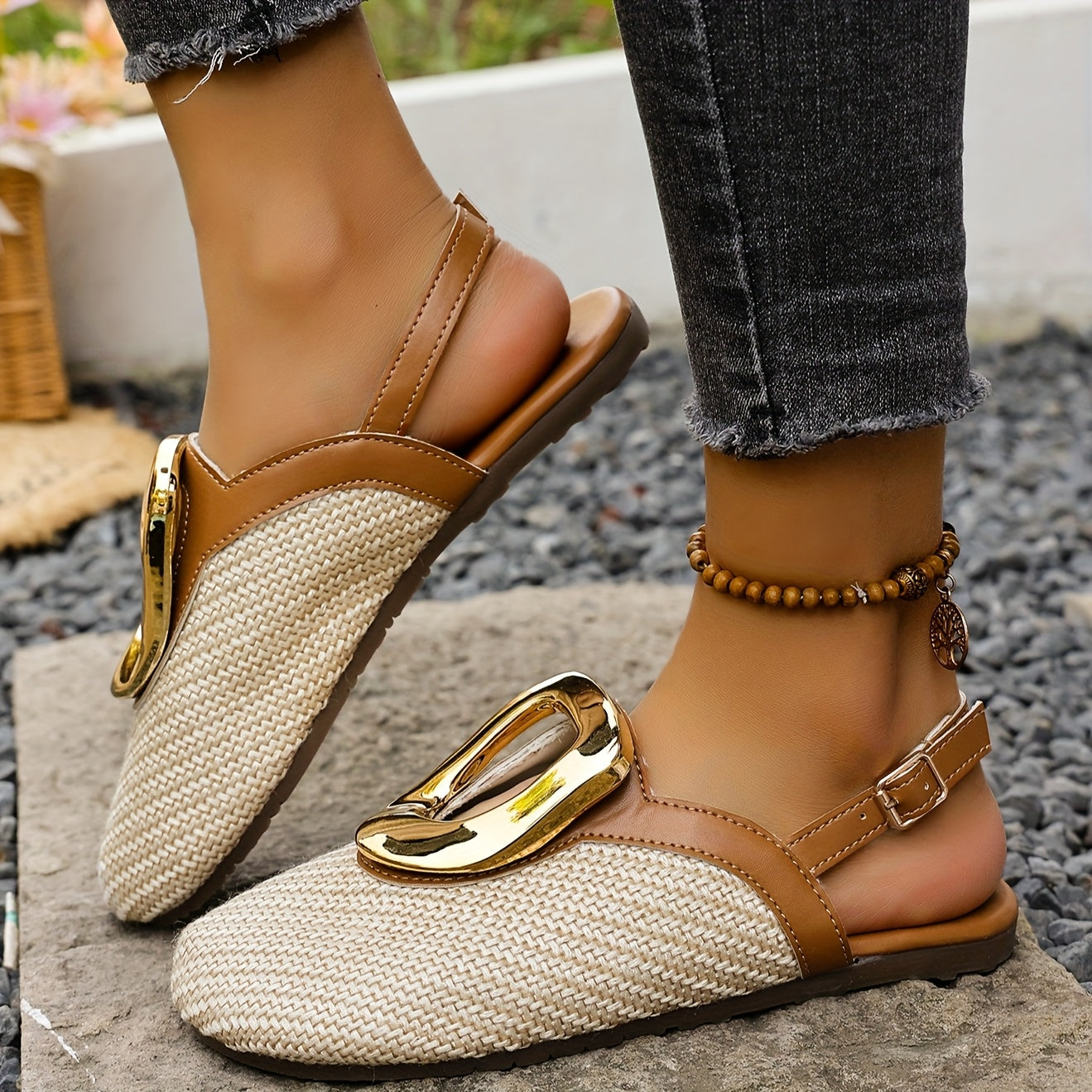 Chaussures à enfiler beiges pour femme - Légères, semelle en caoutchouc, boucle dorée