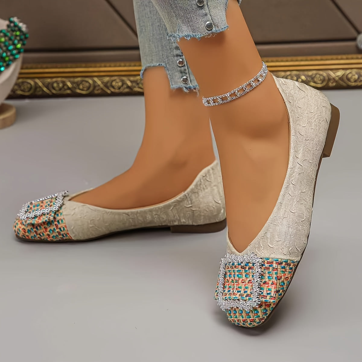 Chaussures plates décontractées pour femmes - Ornements en cristal, légères, lavables à la main