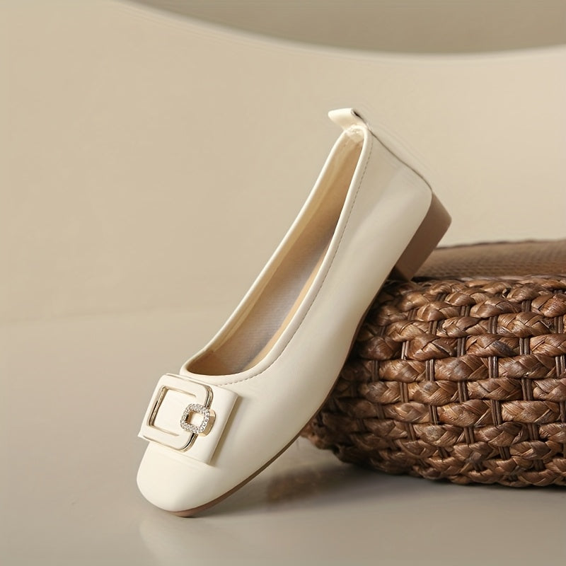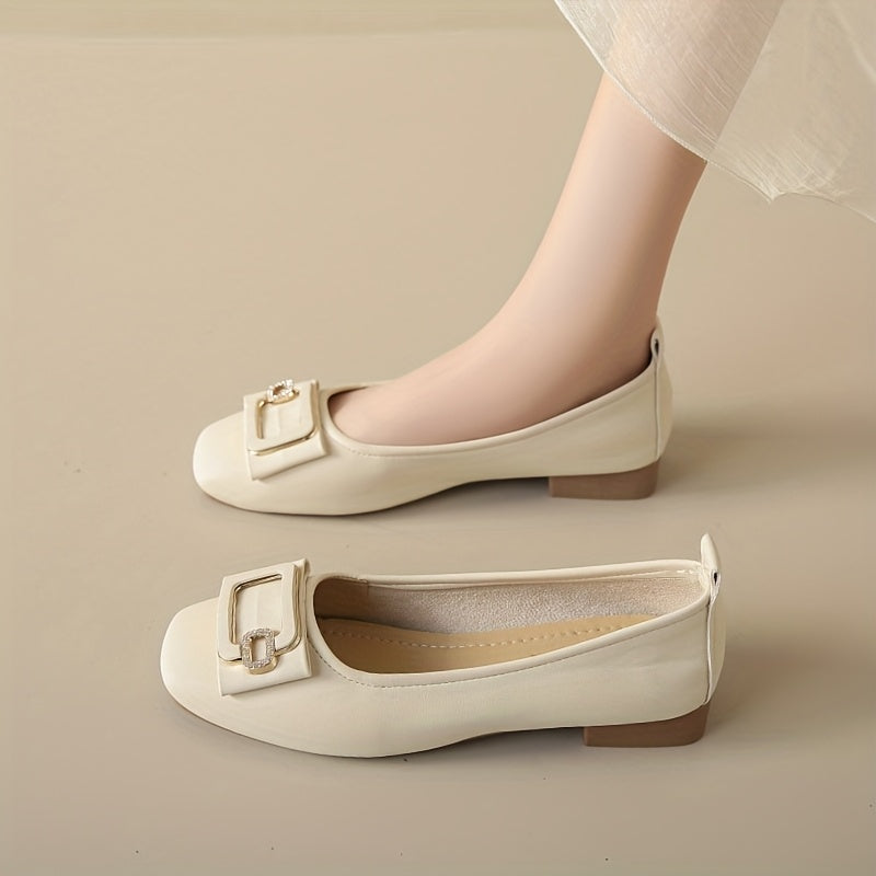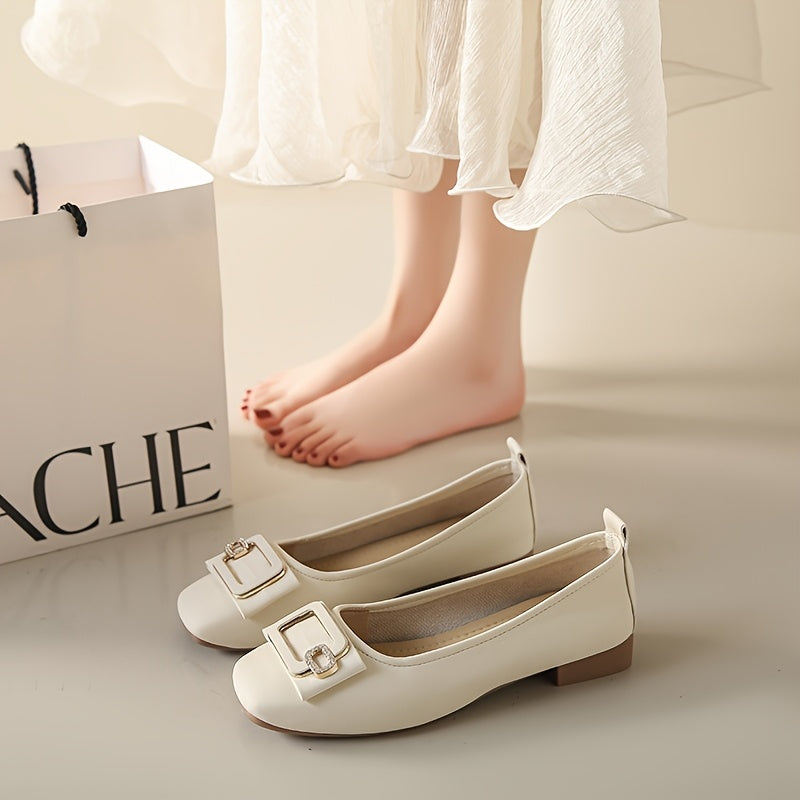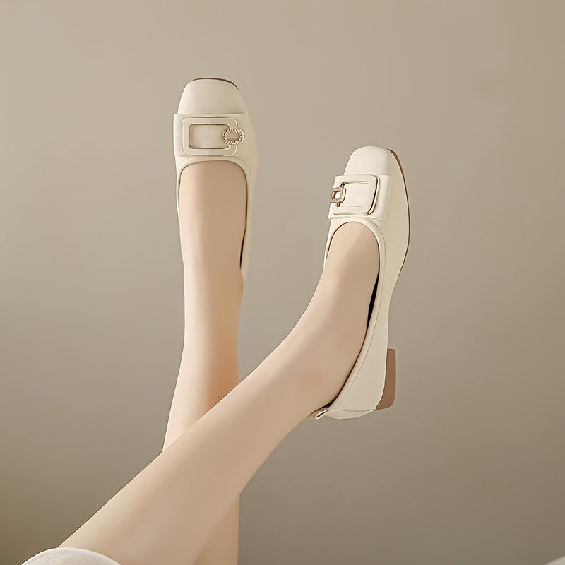 Eleganckie damskie czółenka na obcasie francuskim – gruby obcas z kryształowymi zdobieniami