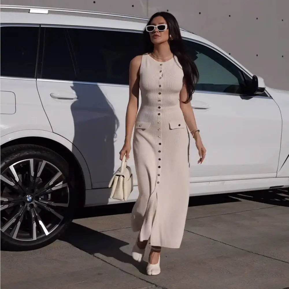 Experience elegance and comfort with our Elegant Knitted Long Dress for Women, crafted for the modern woman who values both style and functionality. This sleeveless bodycon dress is perfect for summer, featuring a flattering ankle-length design and vintage details that elevate your wardrobe.