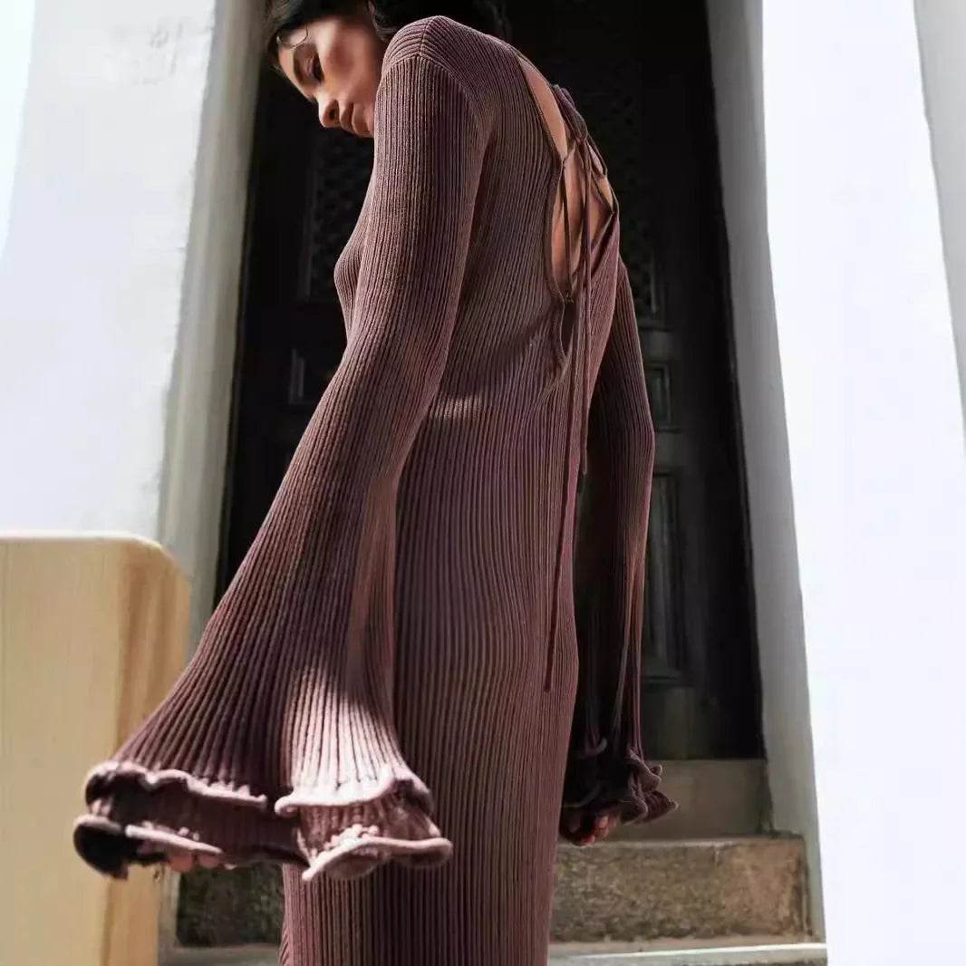 Embrace the beauty of autumn with our Women's Long Sleeve Round Neck Slim Fit Dress featuring a unique wood grain ruffle accent. This stunning dress combines comfort and style, making it essential for your fall wardrobe.