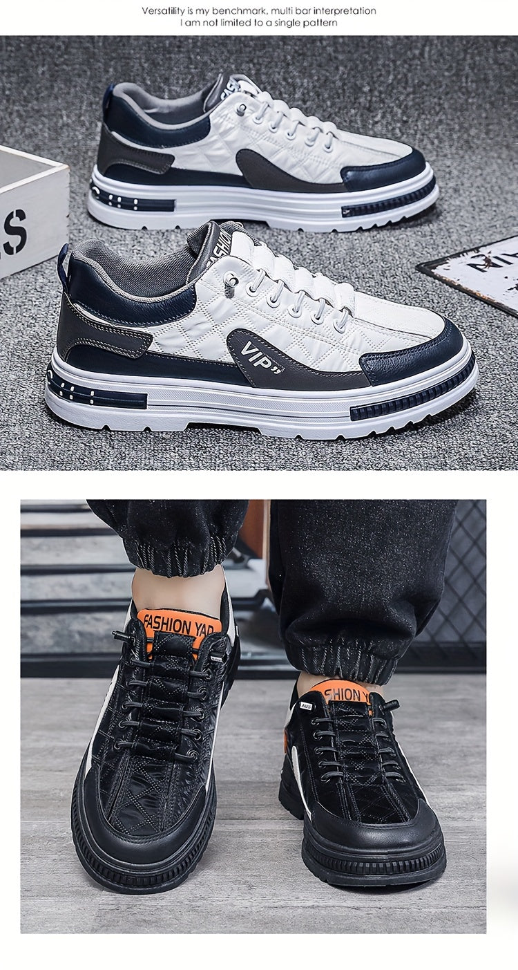 Step into style and comfort with our Men's Trendy Casual Sneakers. Featuring a striking white and navy blue design, these low-top lace-up shoes are perfect for any casual attire. With a comfortable EVA insole and durable PVC sole, they are designed to provide support and style throughout the year.