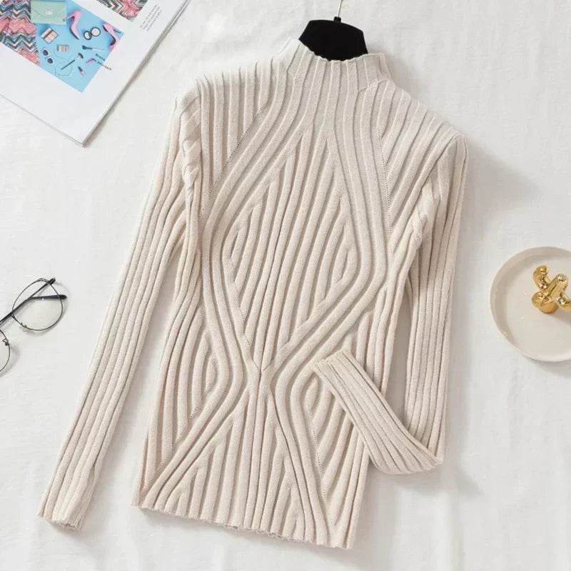 Chic Women’s Knitted Pullover Sweater - Half Turtleneck, Slim Fit