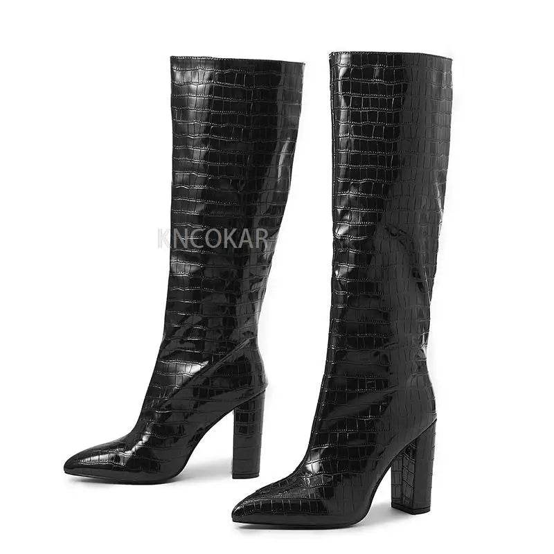 2023 Chunky Over-the-Knee Boots - Lychee Pattern, Pointed Toe Style