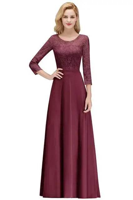 Introducing our stunning Lace Chiffon Long Bridesmaid Dresses, designed to elevate any formal occasion with elegance and grace. Perfect for all ages, these A-Line gowns feature beautiful illusion 3/4 sleeves and stylish sashes, making them a must-have for bridesmaids or evening parties.