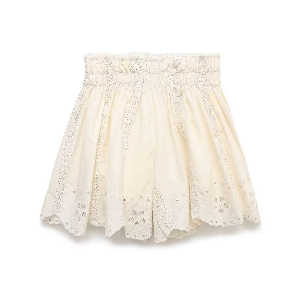 PB&ZA Women's Spring Outfit - Embroidered Top & High Waist Shorts