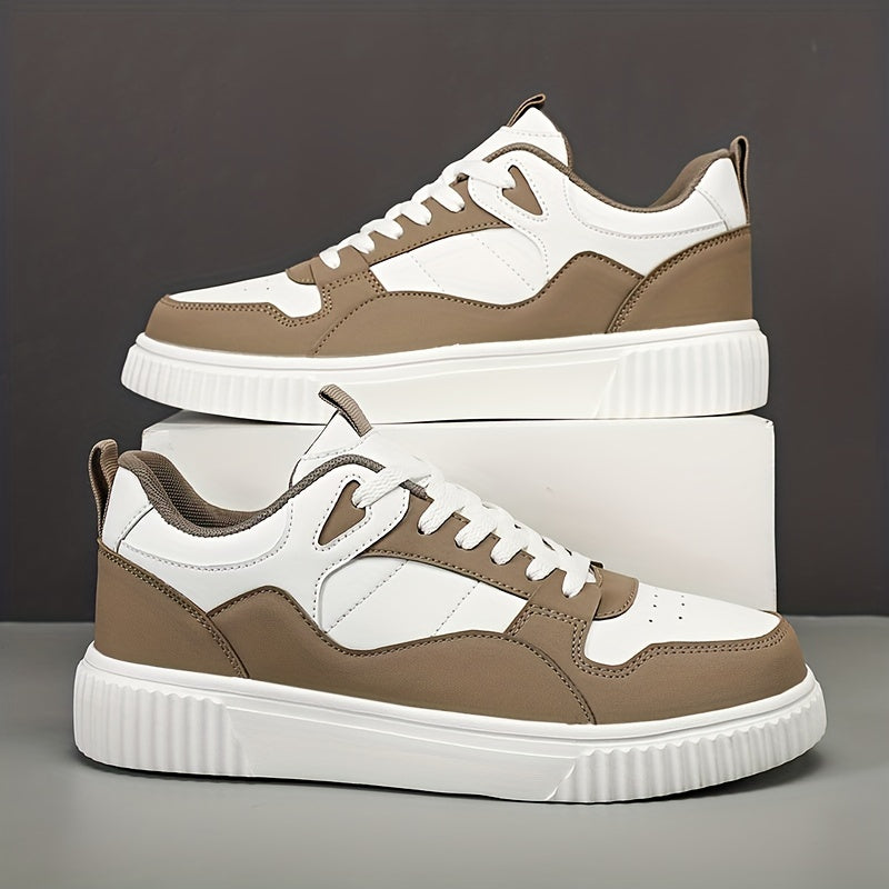 Men's Two-Tone Skate Shoes - Breathable Lace-Up Sneakers with Grip