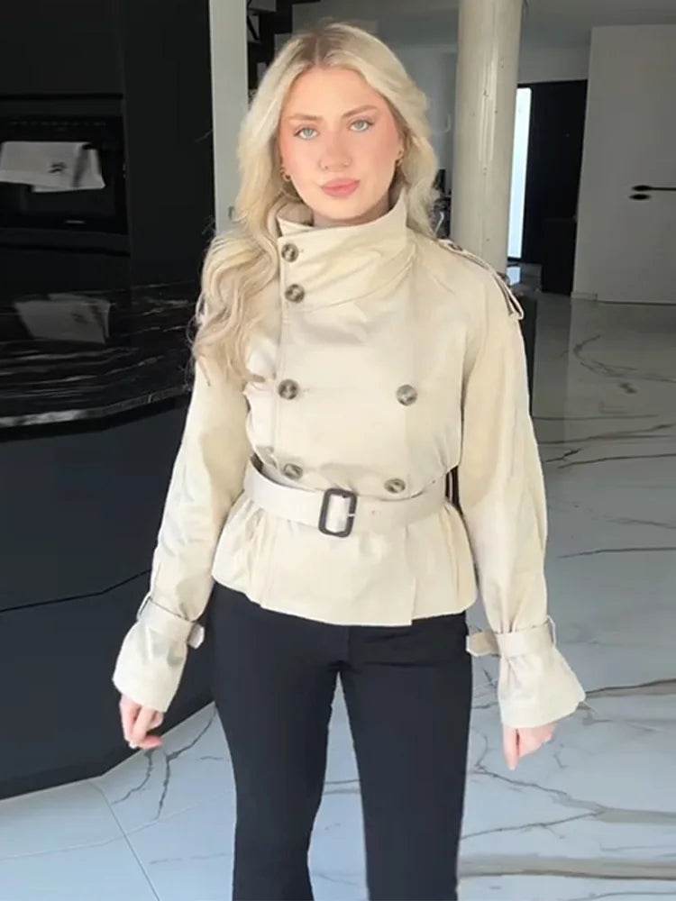 Introducing our Center Women's Spring Double Breasted Trench Coat, meticulously crafted for the modern office lady who values elegance and versatility. This lightweight long sleeve jacket is a must-have for Spring 2025, featuring a stylish stand collar and chic button decorations, seamlessly blending sophistication with practicality.