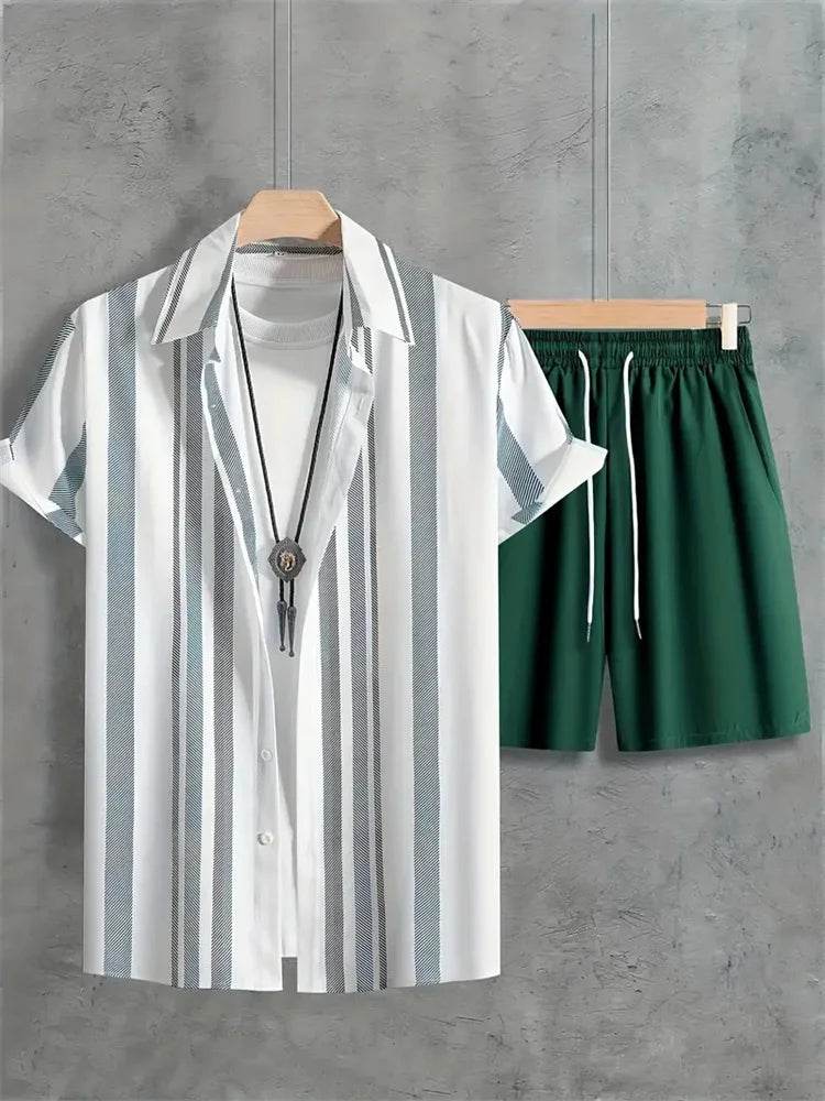 2024 Summer Men's Casual Suit - Striped Shirt & Shorts Set