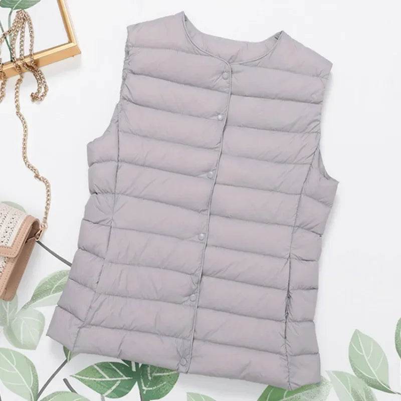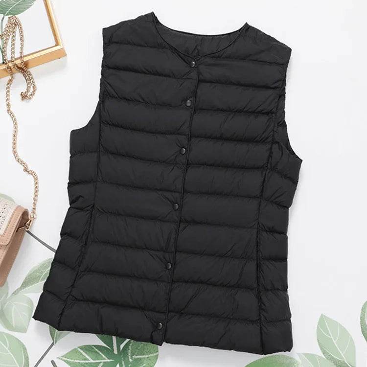 Introducing the 2023 New Arrivals Autumn Winter Warm Women Sleeveless Down Liner Waist Coat, designed to perfectly blend style and comfort. This ultra-light white duck down vest jacket offers exceptional warmth while maintaining a flattering slim fit, ideal for the modern woman.