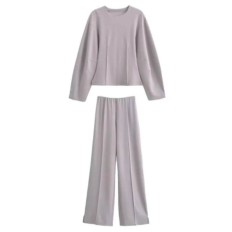 Elegant Women's Two-Piece Set - High Waist Wide Leg Trousers