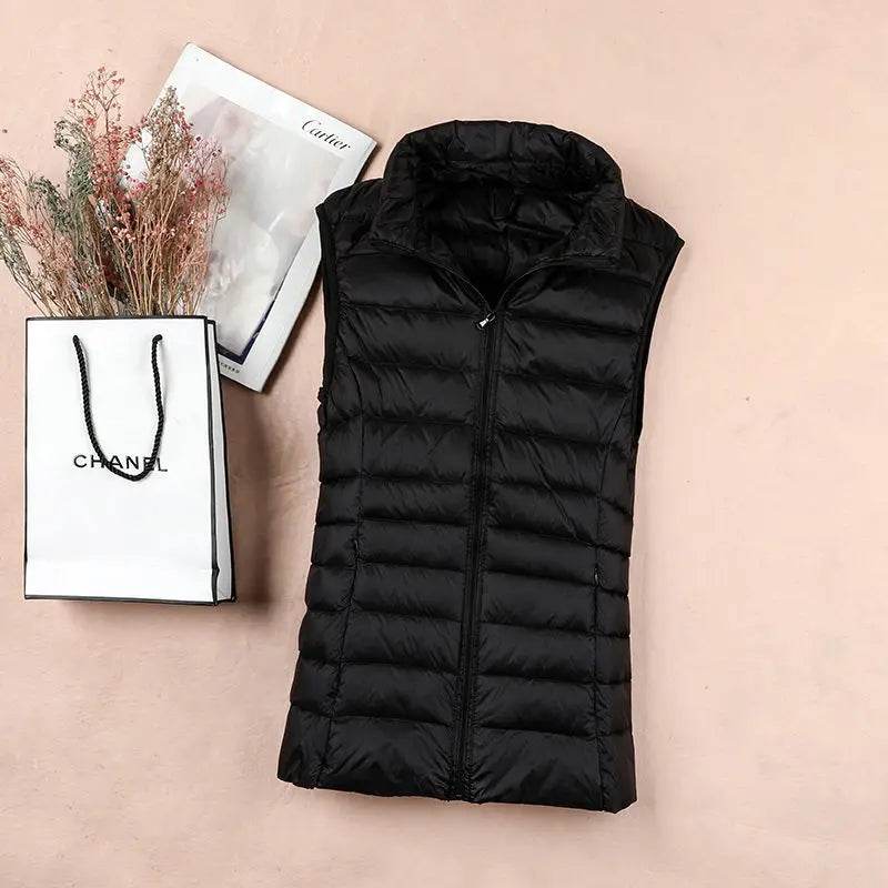 Introducing the Lightweight and Fashionable Down Vest, a stylish and functional addition to your wardrobe that is perfect for all seasons. Crafted with 90% white duck down filling, this vest ensures remarkable warmth without the bulk, making it the ideal choice for middle-aged women who value comfort and fashion.