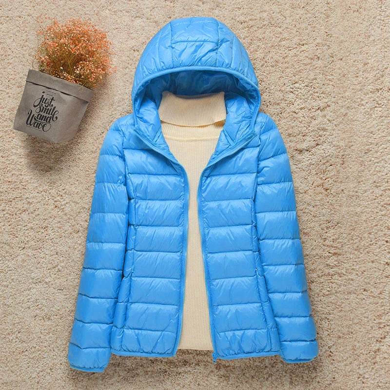 Discover the ultimate comfort and style with our Buy Center Women's Down Jacket, a lightweight hooded parka designed for autumn and winter. Perfect for middle-aged women, this jacket offers warmth with a chic design, crafted from 90% white duck down for exceptional insulation.