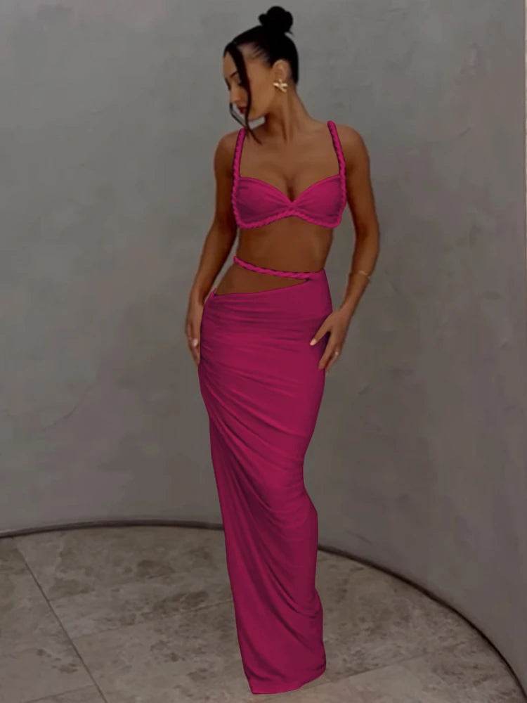 Discover the ultimate blend of elegance and comfort with the Weird Puss Square Collar 2 Piece Set. This chic summer outfit features a stylish bra and a figure-hugging, long bandage skirt, making it an ideal choice for vacations and beach parties.