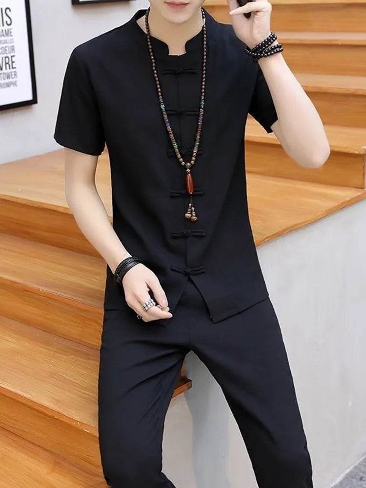 Upgrade your summer wardrobe with this stylish two-piece suit that combines fashion with functionality. The high-quality materials ensure durability while keeping you cool during the hottest days. Its solid color provides the flexibility to mix and match with your favorite accessories, making it a must-have addition to any man's closet this summer.