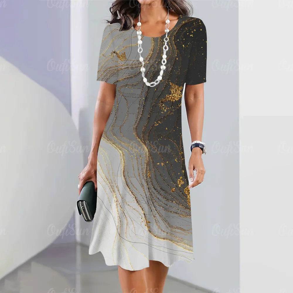 2024 Women's Plus Size Midi Dress - Elegant Graphic Print & Comfort