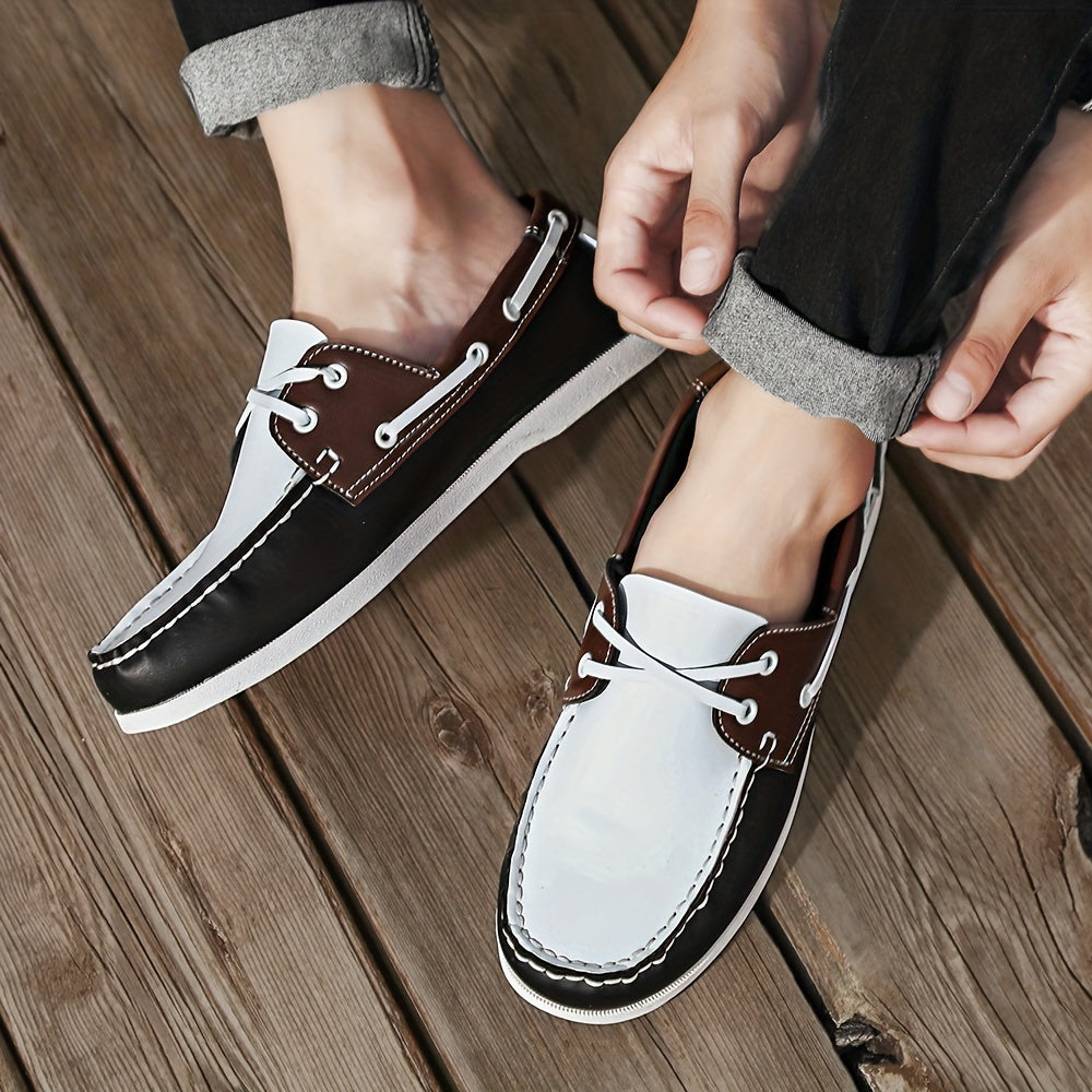 Retro Navy Loafers - Classic Men's Lace-Up Casual Shoes with Brown Accents