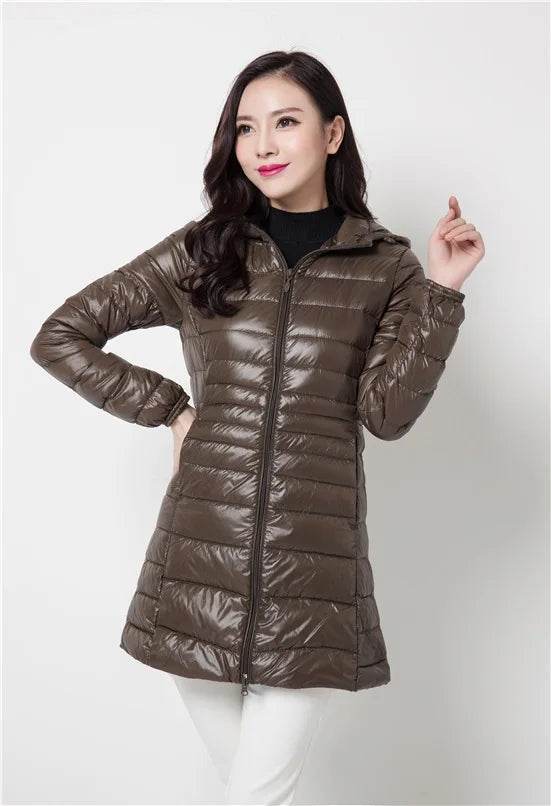 Introducing the Center Women's Lightweight Quilted Jacket, the ultimate blend of style and functionality. Perfect for spring and autumn, this ultra lightweight jacket is water and wind resistant, ensuring you stay comfortable in all weather conditions. With exceptional warmth thanks to its 90% white duck down filling, this jacket offers a cozy fit without the bulk.